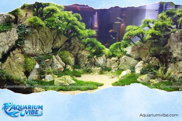 - Rêu thủy sinh: Một số loại rêu như rêu mini taiwan, rêu java hoặc rêu weeping có thể buộc lên đá để tăng độ tự nhiên và giúp bố cục trông giống cảnh rừng núi thu nhỏ.